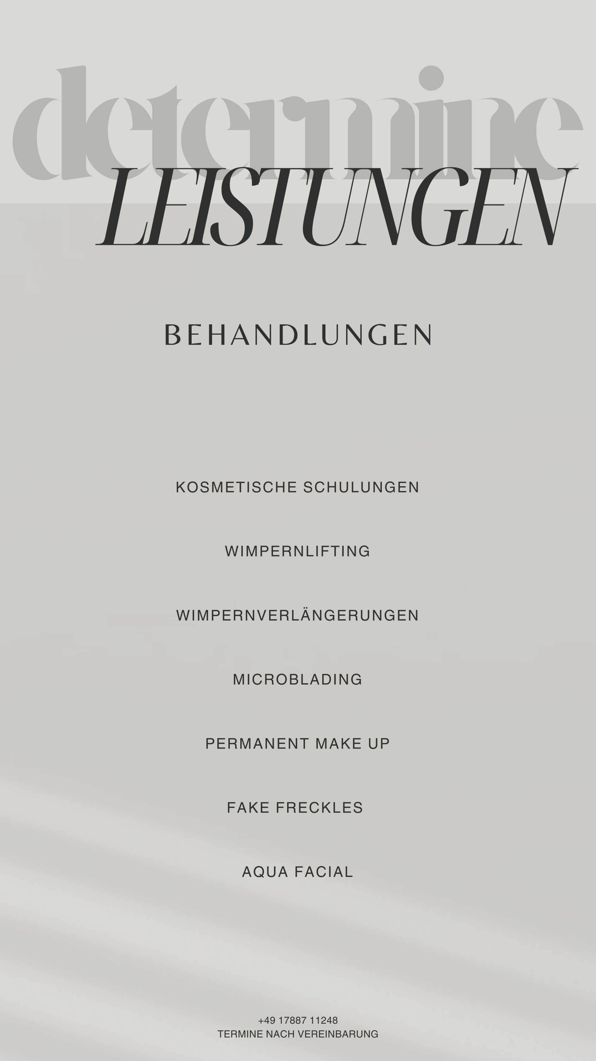 Bei Determine erwartet Dich ein umfangreiches Beauty-Angebot, das individuell auf Deine Wünsche und Bedürfnisse abgestimmt ist. Mit modernsten Techniken, hochwertigen Produkten und viel Erfahrung erzielen wir Ergebnisse, die Deine natürliche Schönheit unterstreichen und Dein Selbstbewusstsein stärken.